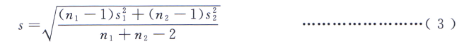 其中,兩組等精度測定結果的合并實驗標準偏差s按式(3)計算: