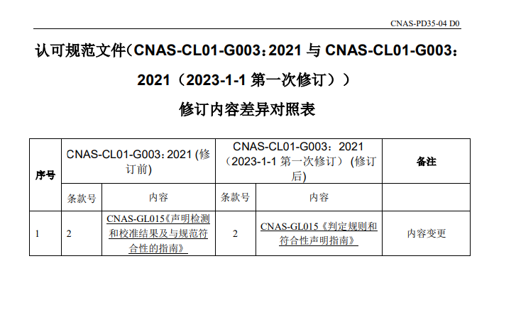 認可規范文件(CNAS-CL01-G003:2021 與 CNAS-CL01-G003:對照表.pdf