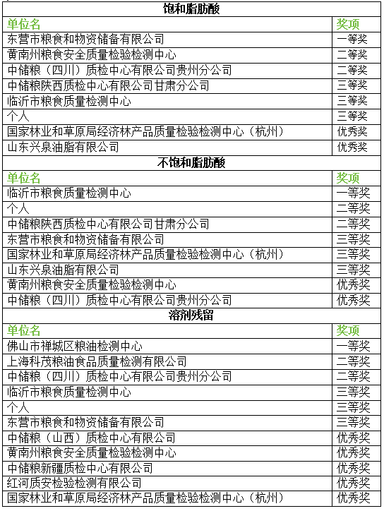 截止目前“2024年度糧油實驗室間比對暨糧油檢測大賽”糧食中黃曲霉毒素;食用油中脂肪酸、溶劑殘留實驗室間比對工作已經圓滿結束,糧油質監中心、糧油生產企業、糧油儲備庫、糧油質量檢驗檢測中心、糧油產品質量監督檢驗站、三方檢測機構、食品生產企業、食品綜合檢測中心、質檢院、高校、科研院所等單位參與了本輪次比對活動,經國家糧食和物資儲備局科學研究院糧油質量檢驗測試中心和能力驗證網共同組成的專家組對本次大賽各參賽單位結果按照獲獎評審原則進行評選,現將本輪次大賽獲獎名單進行公布。