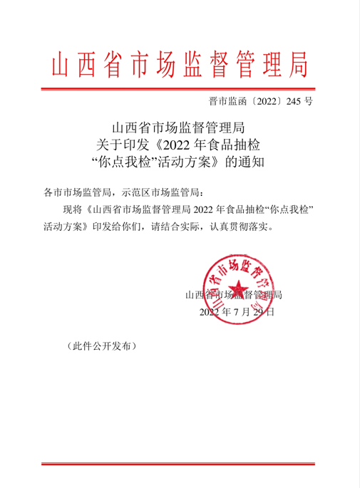 山西省市場監督管理局關于印發《2022年食品抽檢“你點我檢”活動方案》的通知