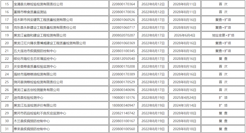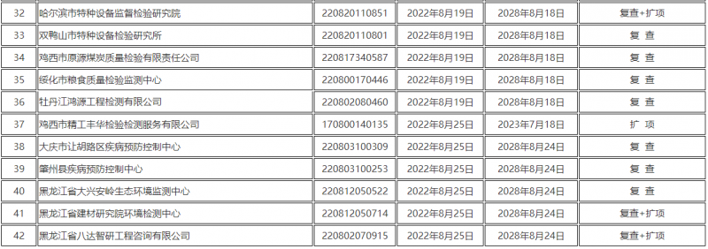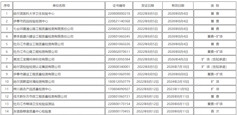 黑龍江省市場監督管理局關于發布2022年8月份通過資質認定的檢驗檢測機構名單的通告